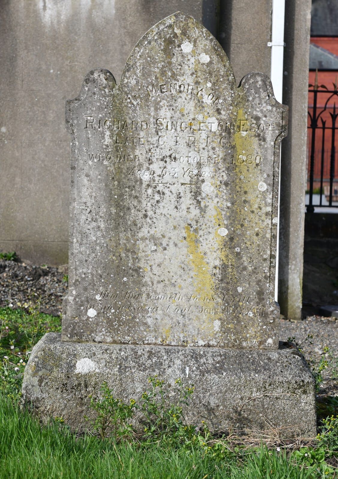 In memory of Richard Singleton Esq. late C.I., R.I.C. who died 7th October 1880 aged 63 years