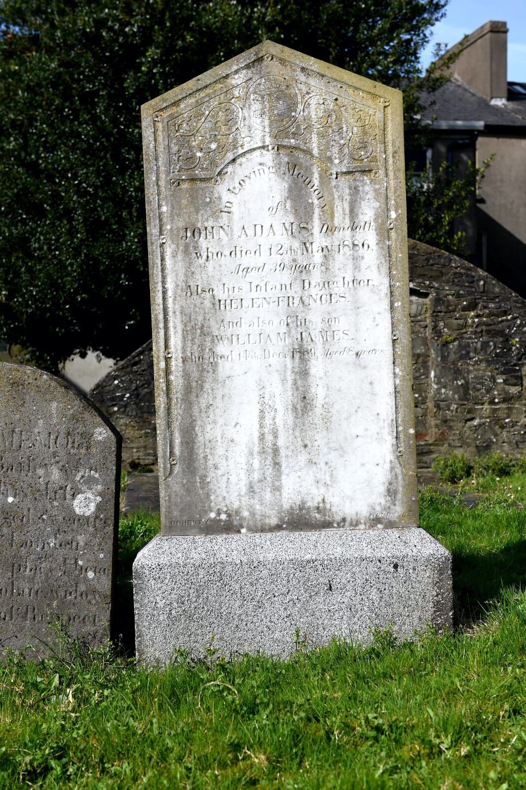 In loving memory of John Adams, Dundalk who died 12th May, 1886 aged 39 years
