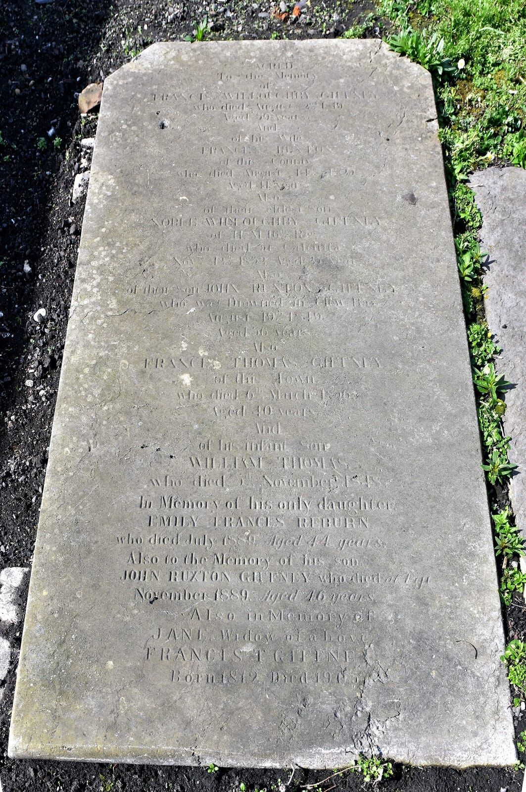 Also Francis Thomas Giffney of this town who died 6th March 1856 aged 40 years and of his infant son William Thomas who died 5th November 1848