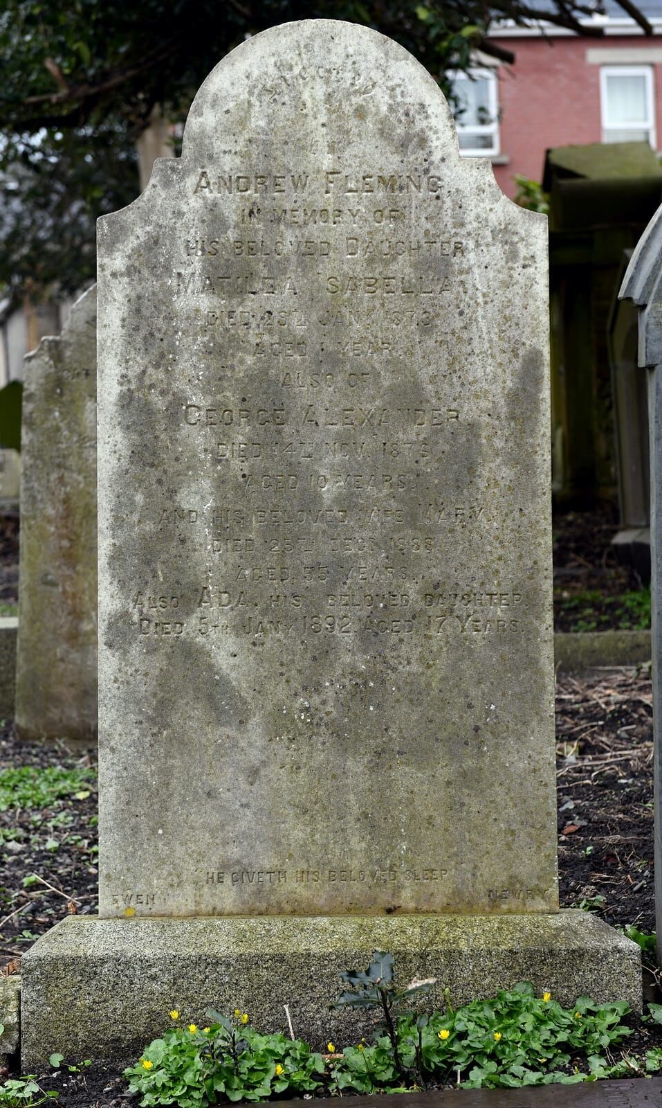 Erected by Andrew Fleming in memory of his beloved daughter Matilda Isabella died 29th Jany. 1873 aged 1 year