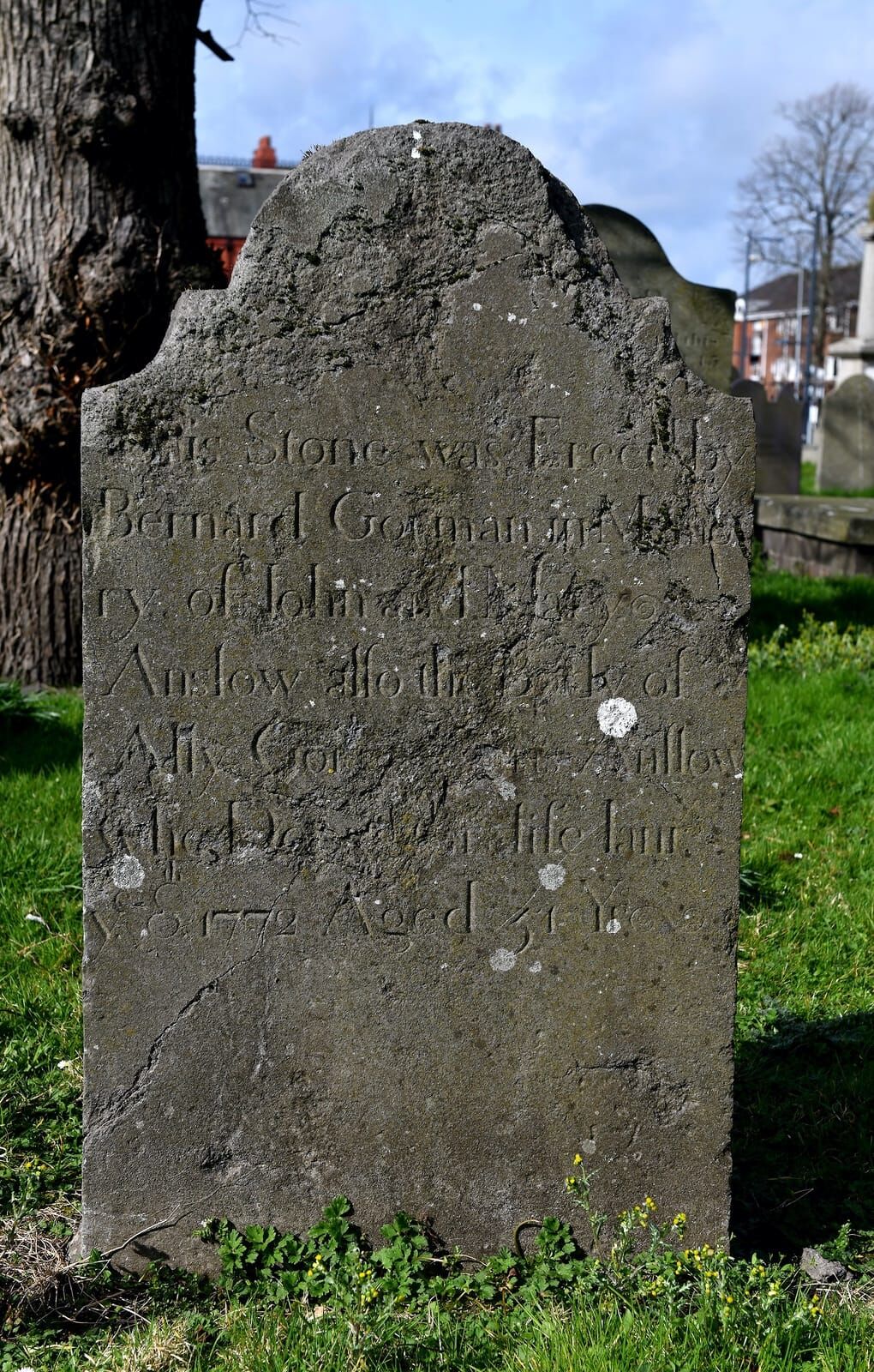 Also the body of Ally Gorman alias Anslow who deptd this life Janry ye 8th 1772 aged 51 years