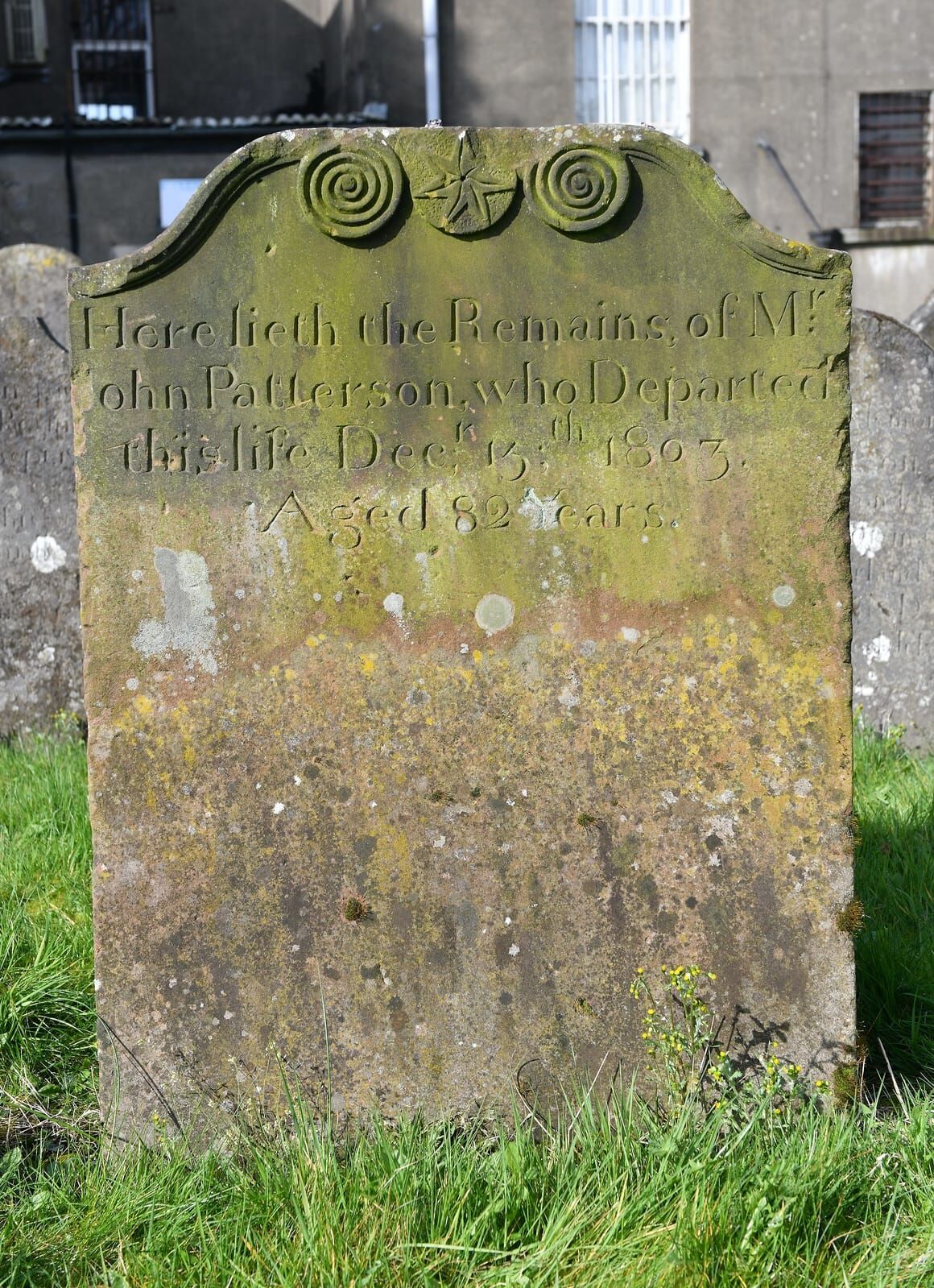 Here lieth the remains of Mr John Patterson who departed this life Decr 15th 1803 aged 82 years