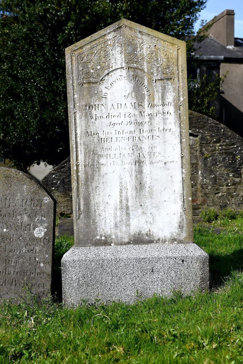 In loving memory of John Adams, Dundalk who died 12th May, 1886 aged 39 yearsAlso his infant daughter Helen-Frances and also of his son William James who died 14th Decr 1889, aged 8 years.