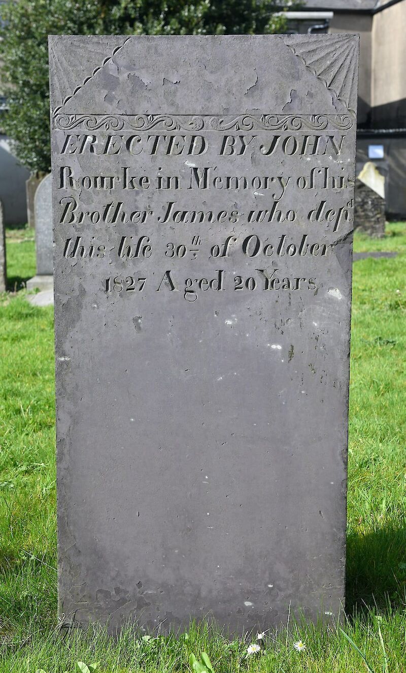 Erected by John Rourke in memory of his brother James who depd this life 30th of October 1827 aged 20 years