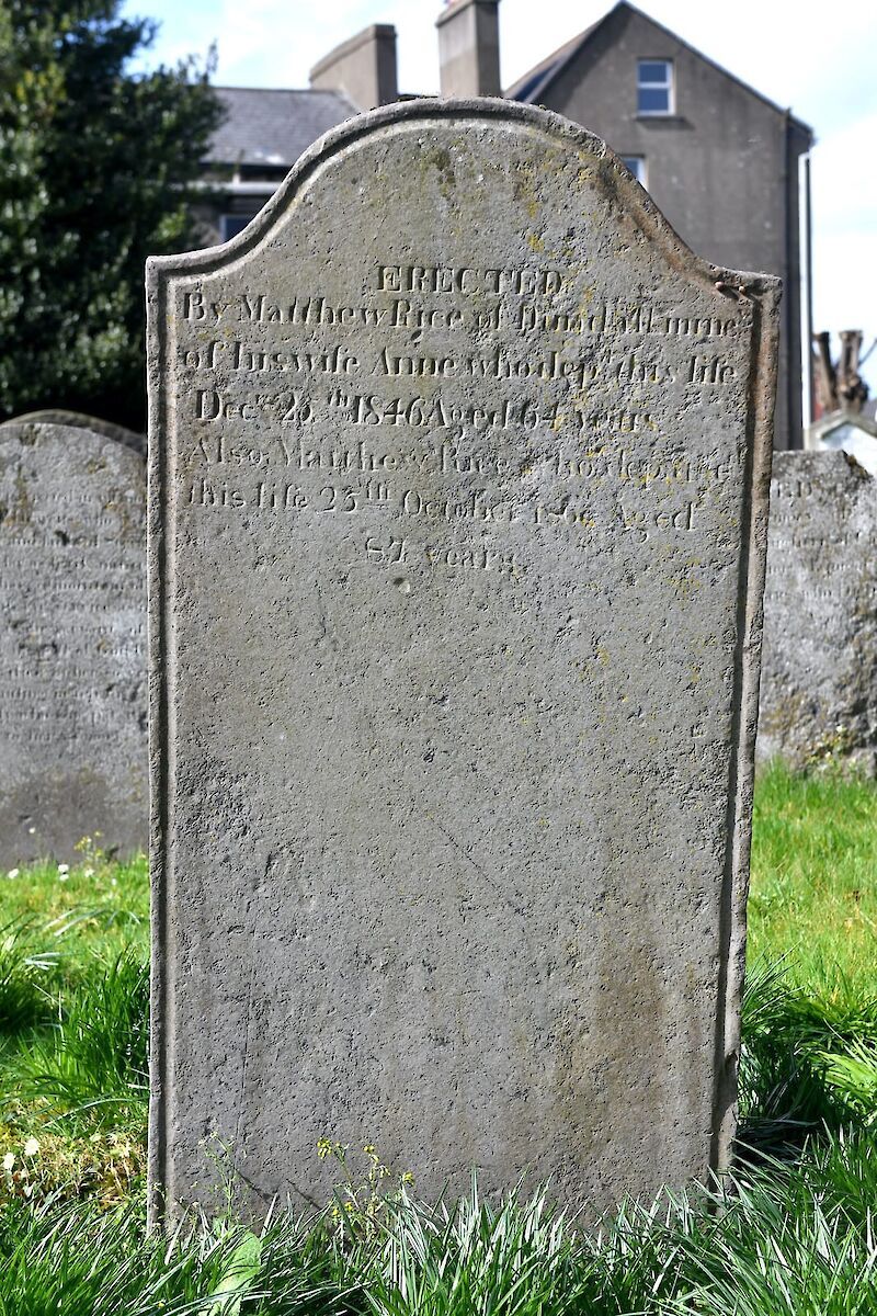 Erected by Matthew Rice of Dundalk in mey. of his wife Anne who depd this life Decr 25th 1846 aged 64 yearsAlso Matthew Rice who departed this life 25th October 1860 aged 87 years