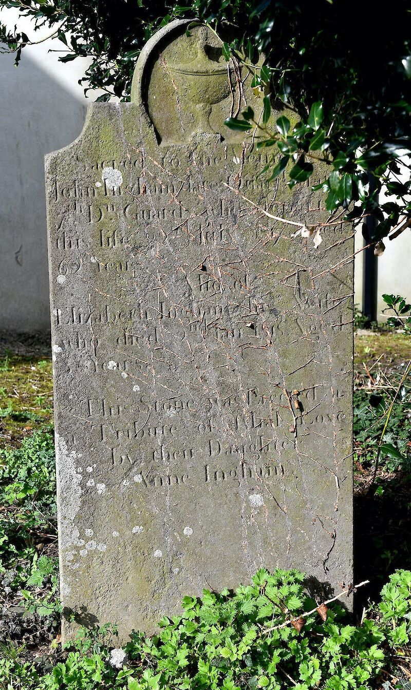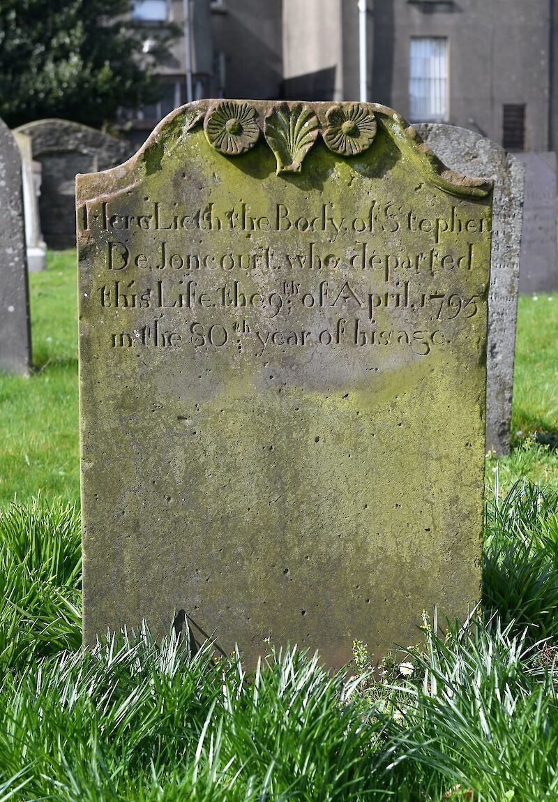 Here lieth the body of Stephen De Joncourt who departed this life the 9th of April, 1795 in the 80th year of his age.
