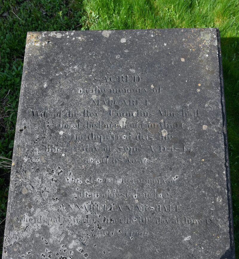 Sacred to the memory of Margaret wife of Revd . Cornelius Marshall Rector of the Parish of Faughart who departed this life the 13th day of Septr. A.D. 1847, aged 68 yearsand also to the memory of…