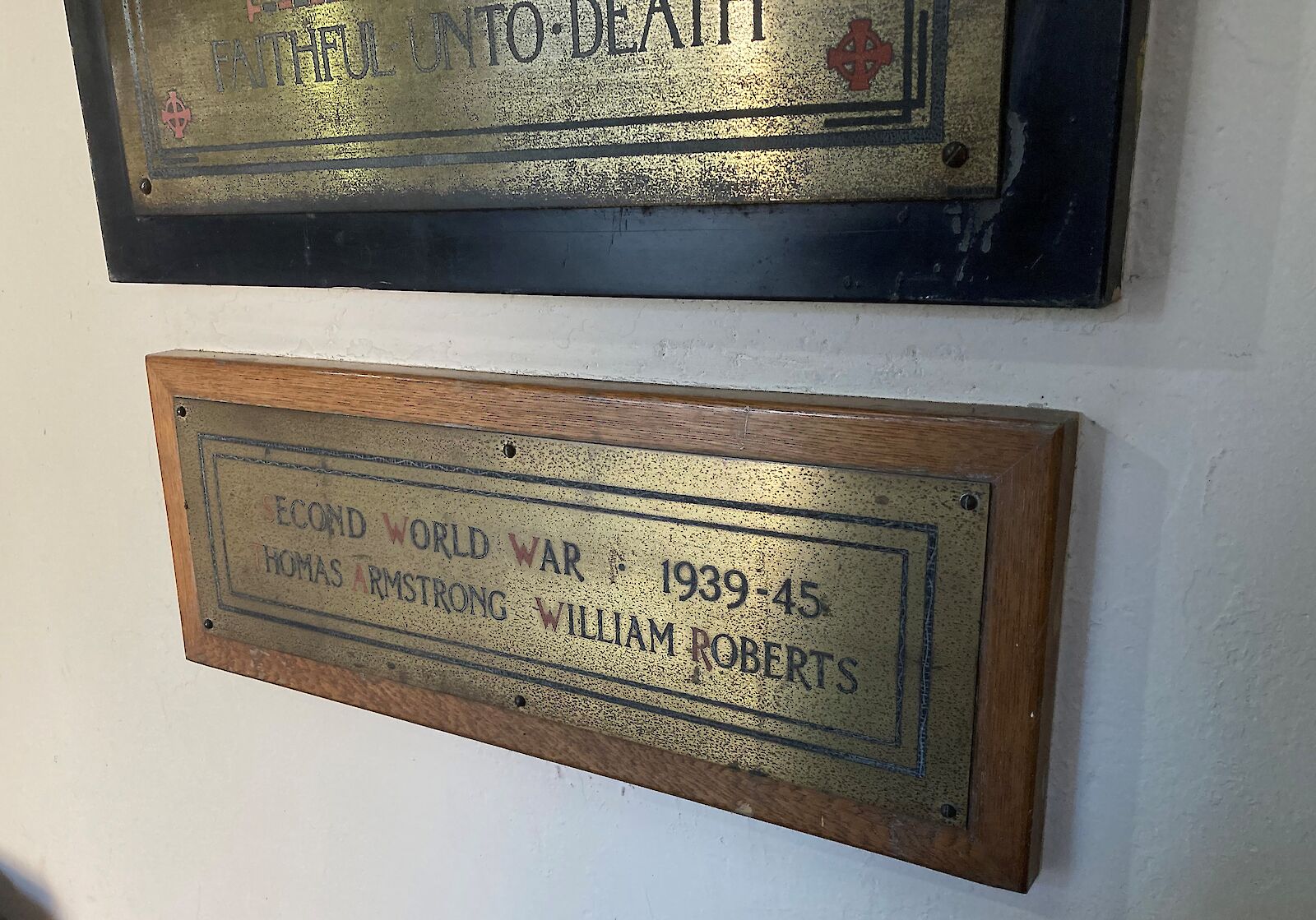 It is located in the Church porch. Under the WWI memorial.